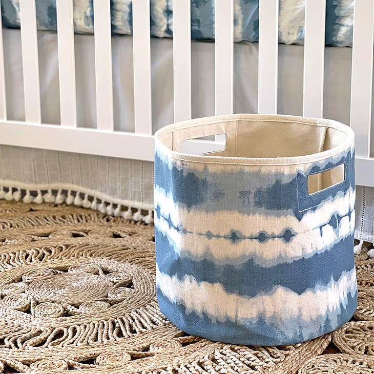 Organize in style with our canvas storage bins. Available in a variety of prints and designs. The perfect way to store toys, diapers and nursery essentials keeping your space neat and clean. Storage bins are ready to go - just pop open and tote from room to room.