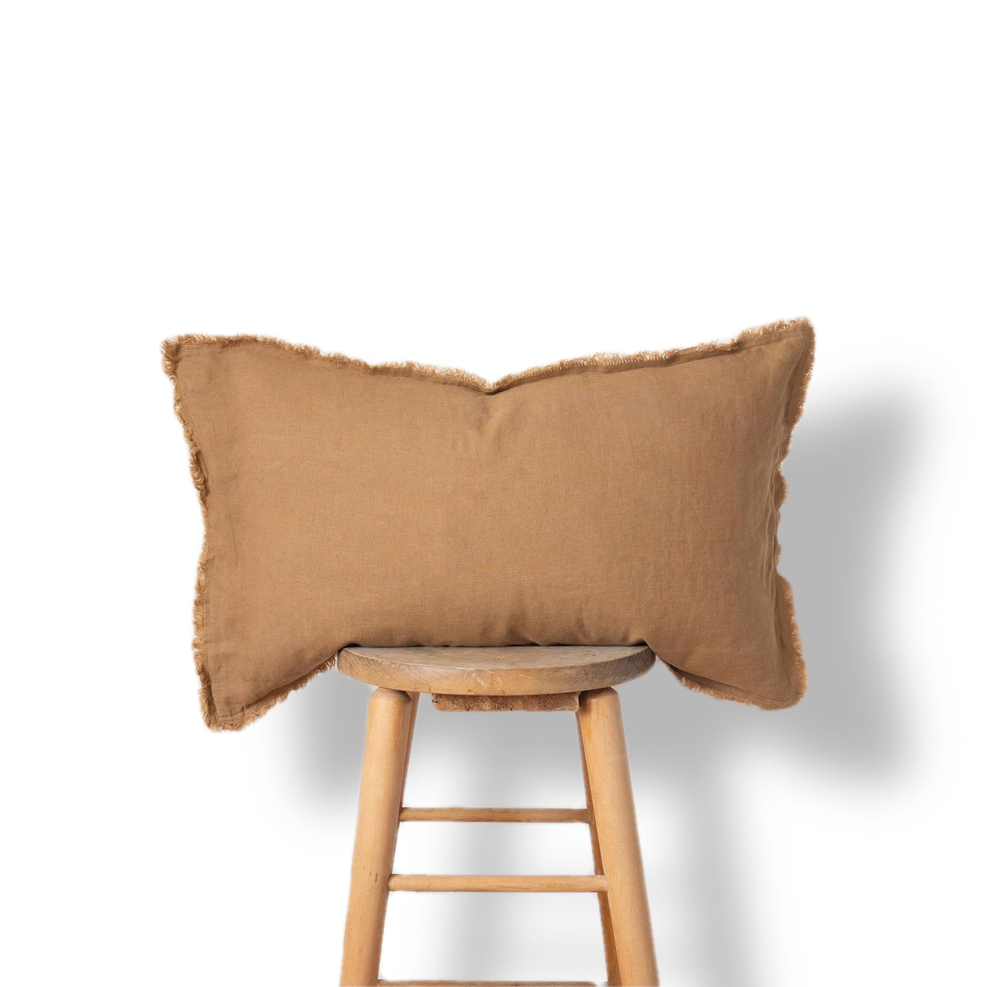 This 100% linen Lumbar Fringed Pillow Cover in Camel is made from the finest French and Belgian flax. This cover is made in Portugal and stonewashed for a soft feel from day one.