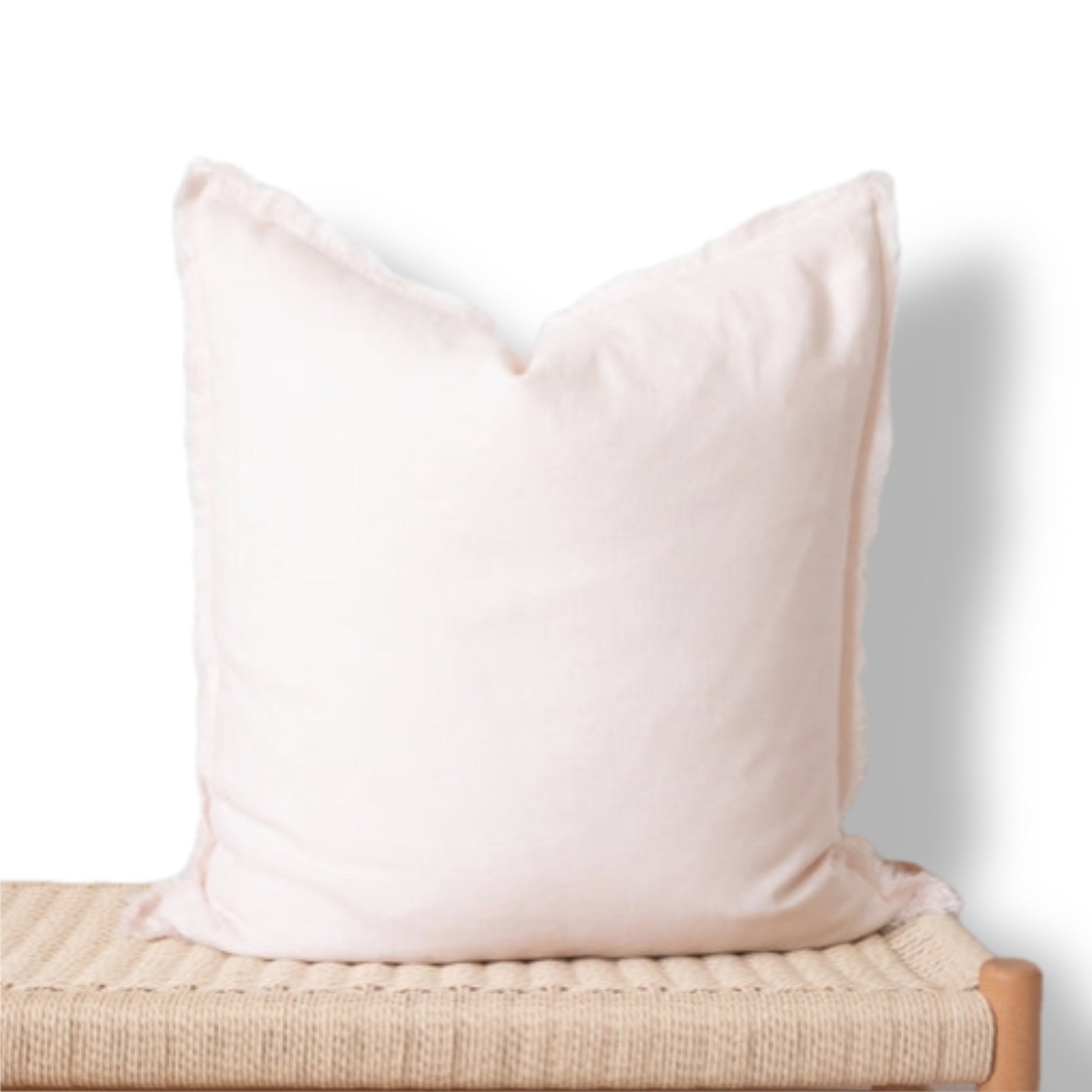This 100% linen Square Fringed Pillow Cover in Blush is made from the finest French and Belgian flax. This cover is made in Portugal and stonewashed for a soft feel from day one. Edged with black piping.